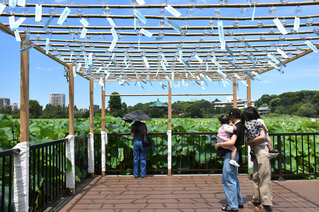 池に浮いた遊歩道は沢山の風鈴が吊るされてました。