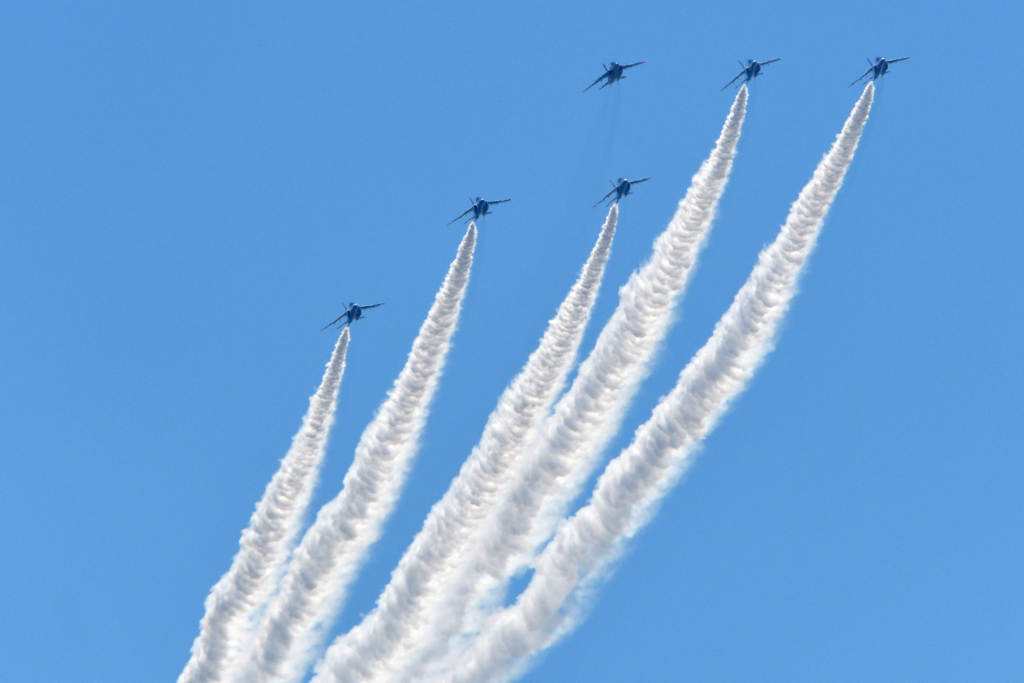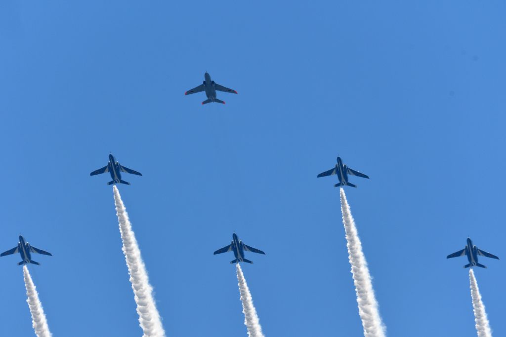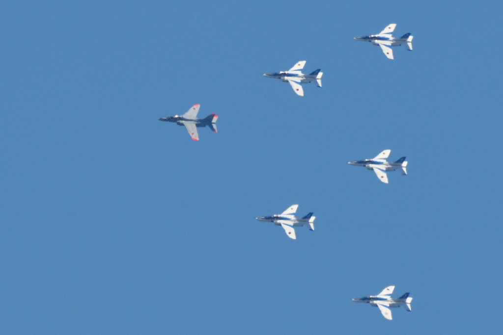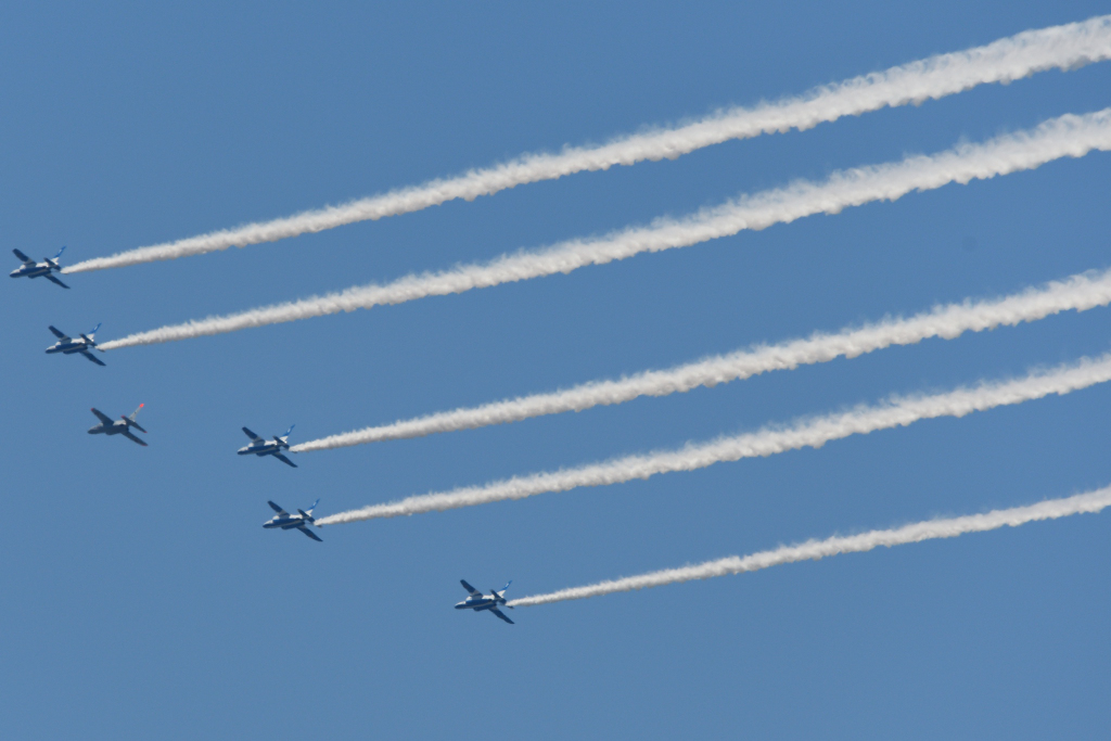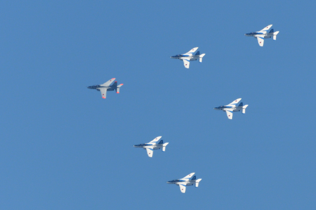 隊長機の色がブルーインパルスカラーで無いのが気になったけど練習だからかなと…