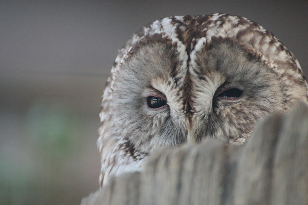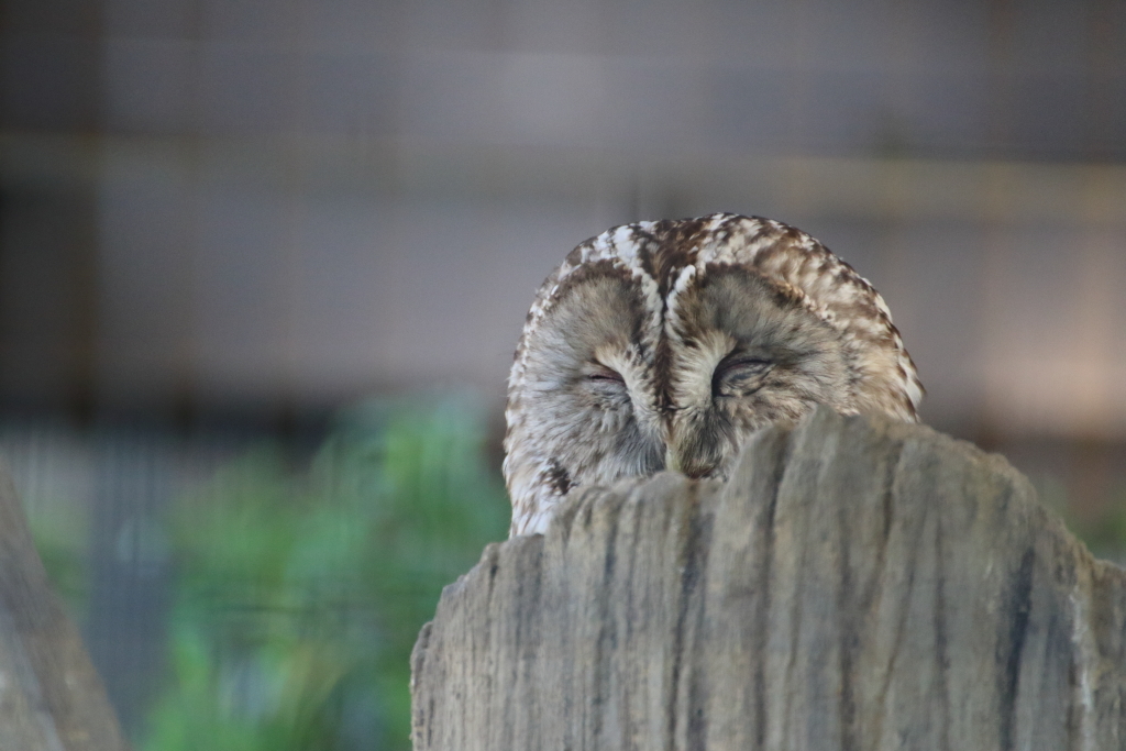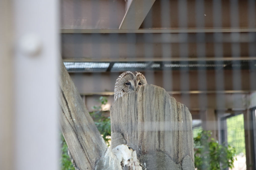 『ホンドフクロウ』。ここから檻の目が細かいからか、どうにもAFだとピントが檻に引っ張られてしまうのでMFにしました。