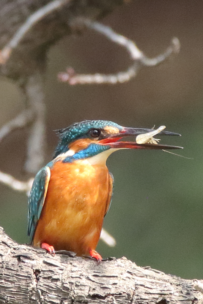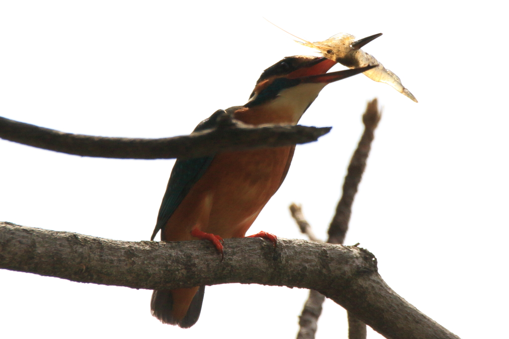 狩りの撮影はまたも全没orz。エビを捕ってました。下嘴が赤いのは光で透けただけなので、『カワセミ♂』です。