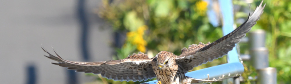 少し離れた橋の上に移動したチョゲ美こと『チョウゲンボウ♀』