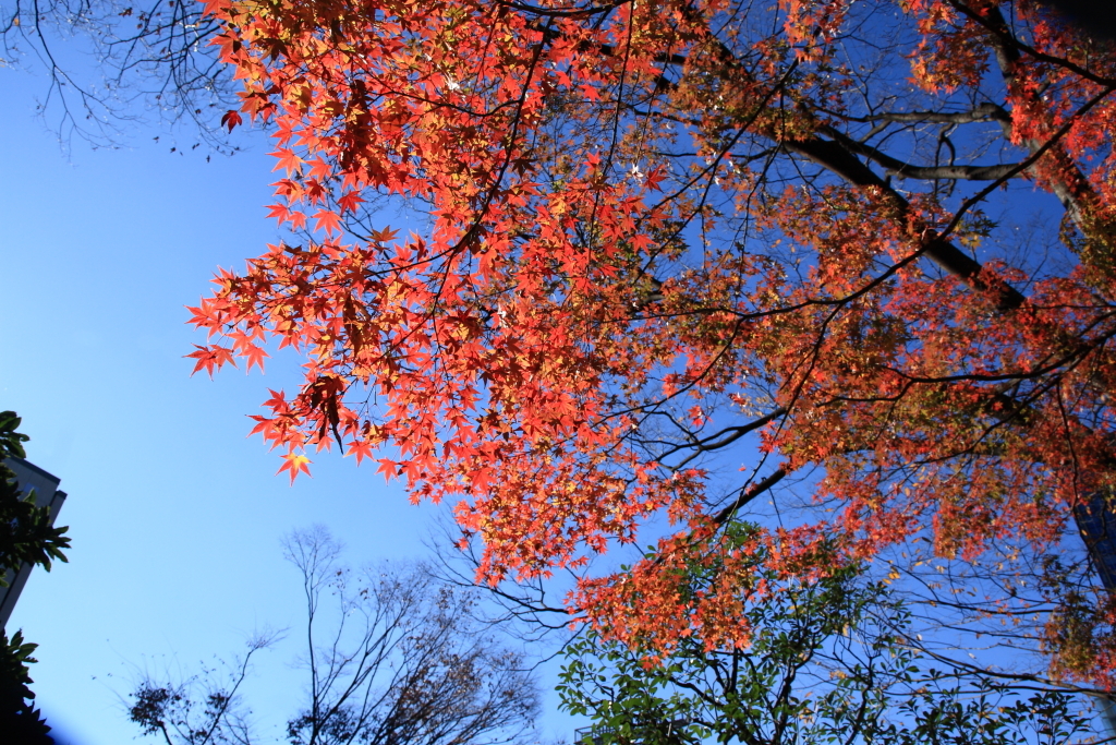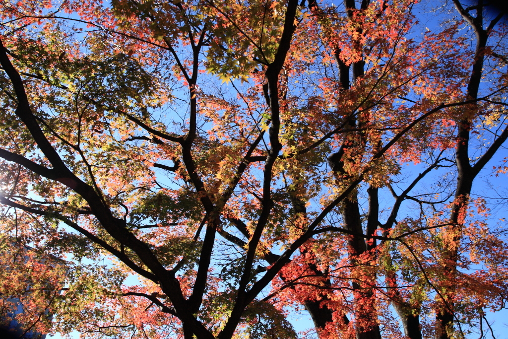 う~ん、葉が完全に落ちてしまった木とまだ緑の木が混在中。戸山公園の時と同じ不安がよぎります…。(どうやら今年は寒暖の差が激しいせいでこのように極端な所もあるようです。)