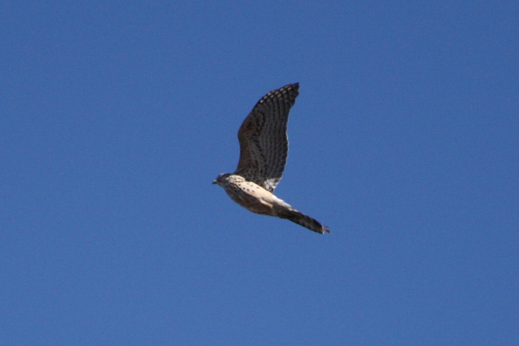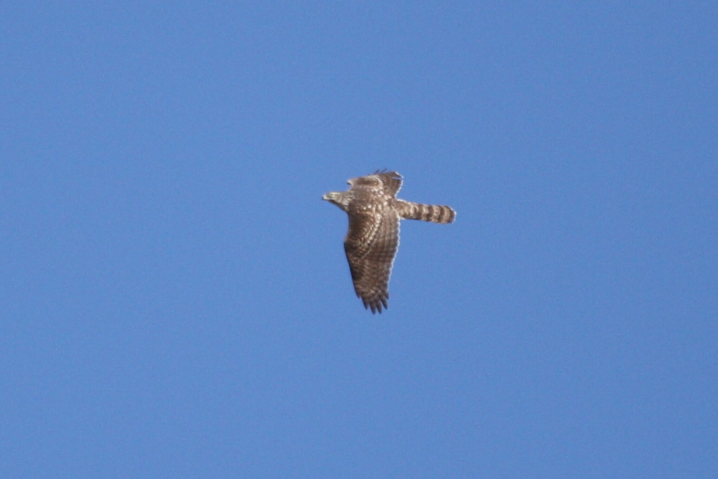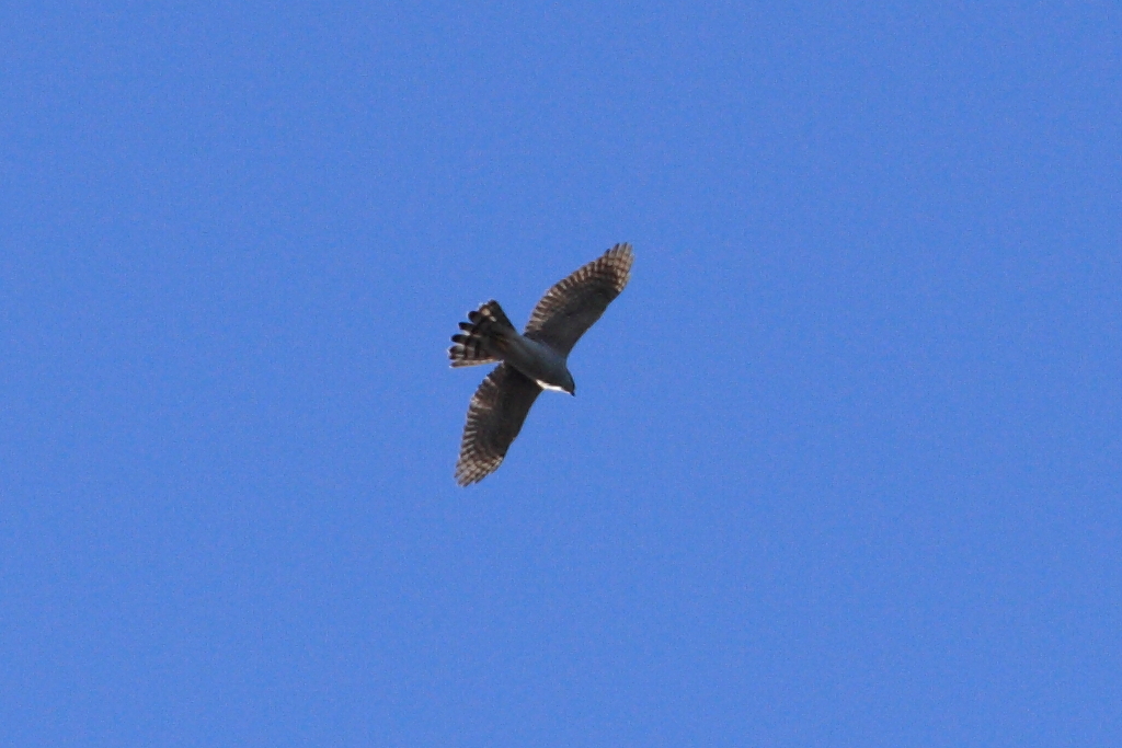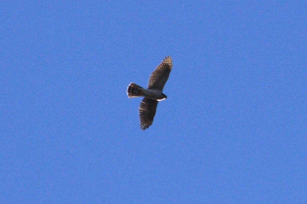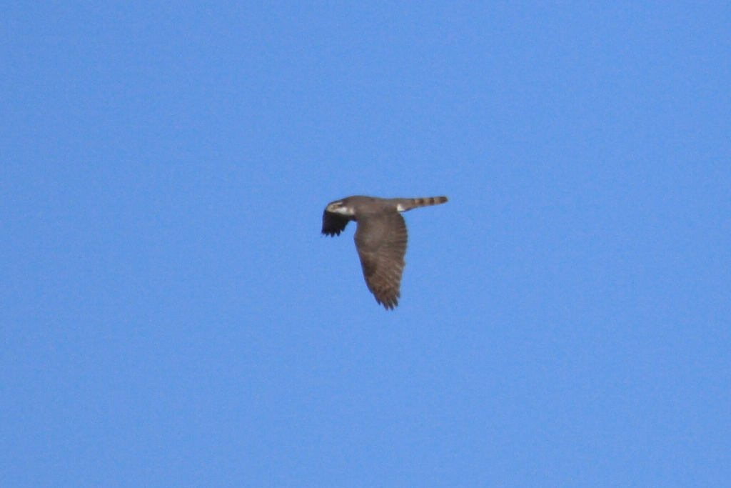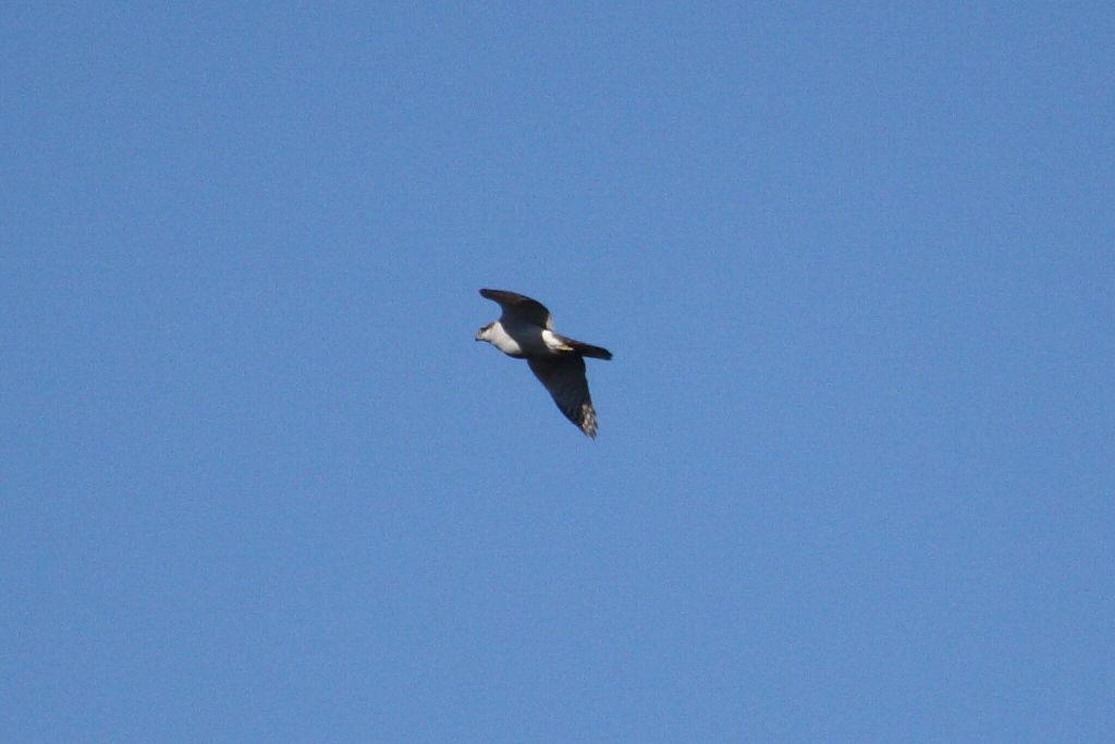 お腹が白いようで(寄ると細い横縞がありました。)ノスリでは無い。