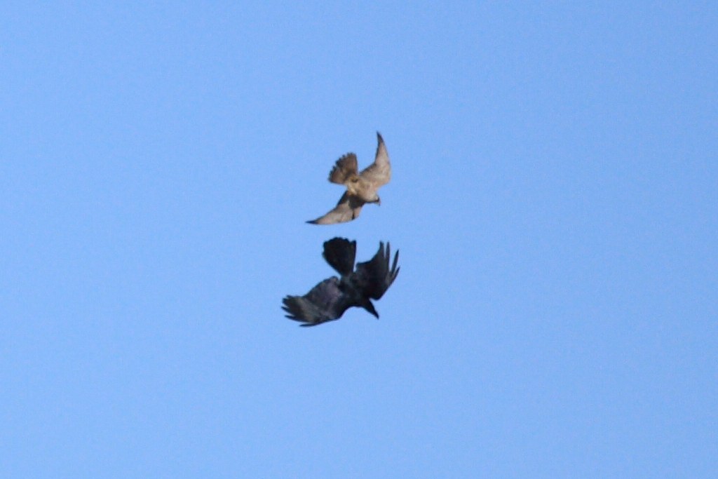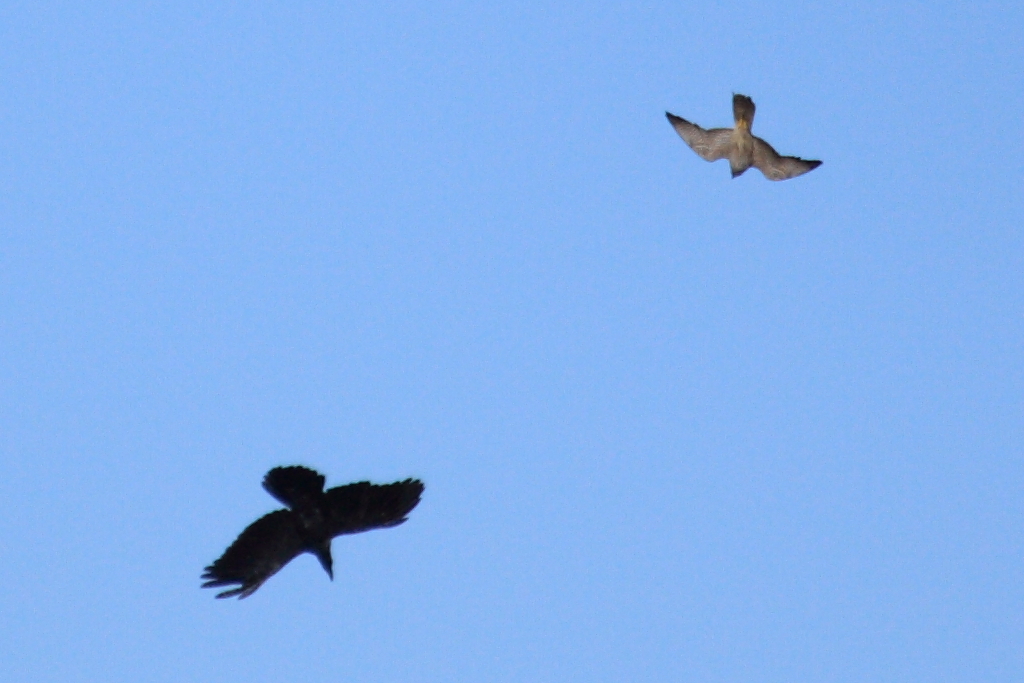 続いて遠くで何羽かのカラスに追われながらも反撃している猛者猛禽が…。