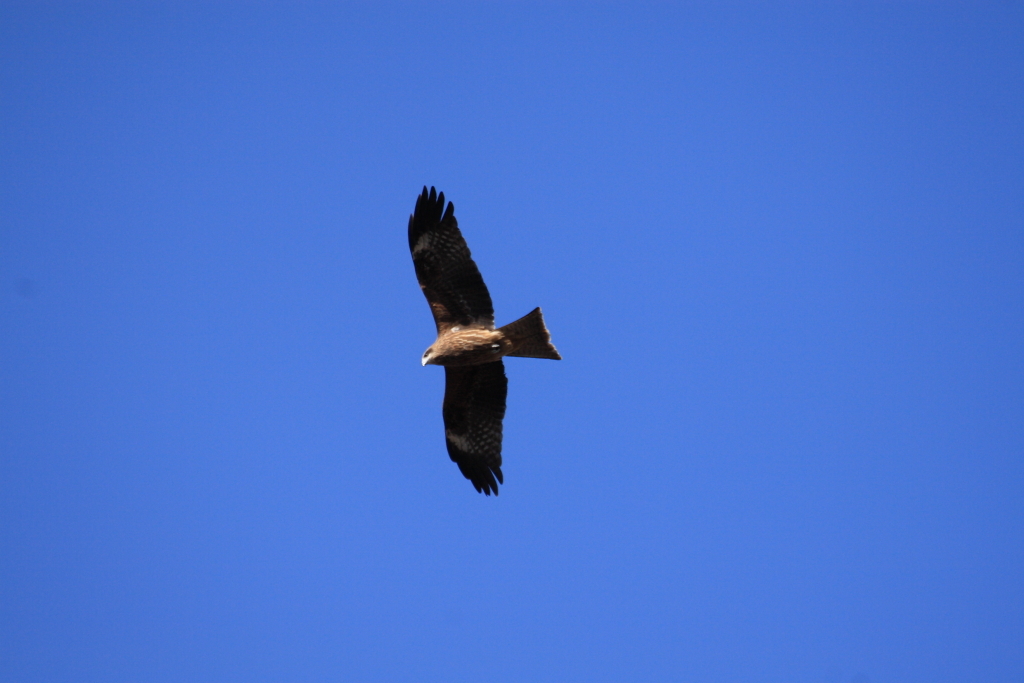 『トビ』。トビは結構大きくて(翼開長150cm以上)大抵旋回しながら高度を上げたり下げたりしているので思いのほか近くで撮れることがありテレ端300の私には有りがたい存在かも。猛禽人気は低いですが…。