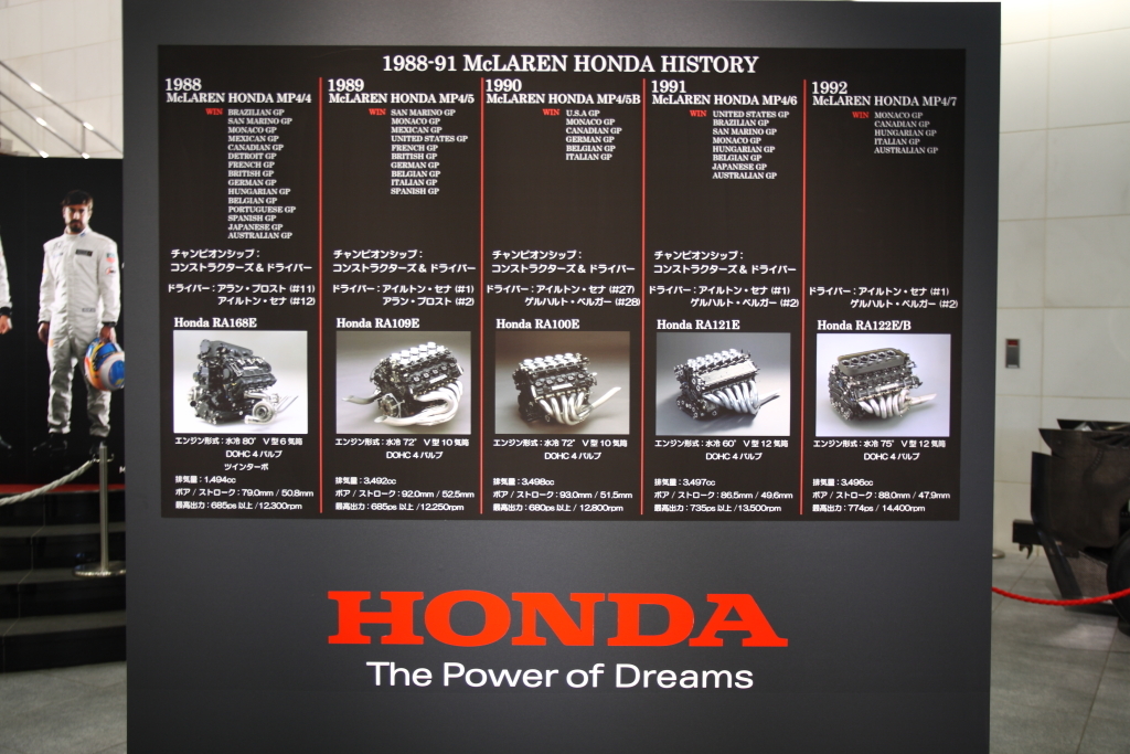 マクラーレン・ホンダの蜜月の足跡がパネルになってました。