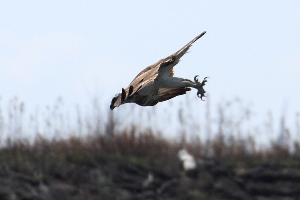 このミサゴはこの後も再三(5,6回)ダイブしていましたが全て失敗していました。『しかし案ずるな、俺もその全て撮るの失敗しているからorz』等と勝手にシンパシーを感じていたら他のミサゴ(ヨメですかね)と合流して沖の方へ去ってしまい本日の猛禽目撃は終了となりました。