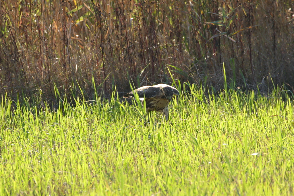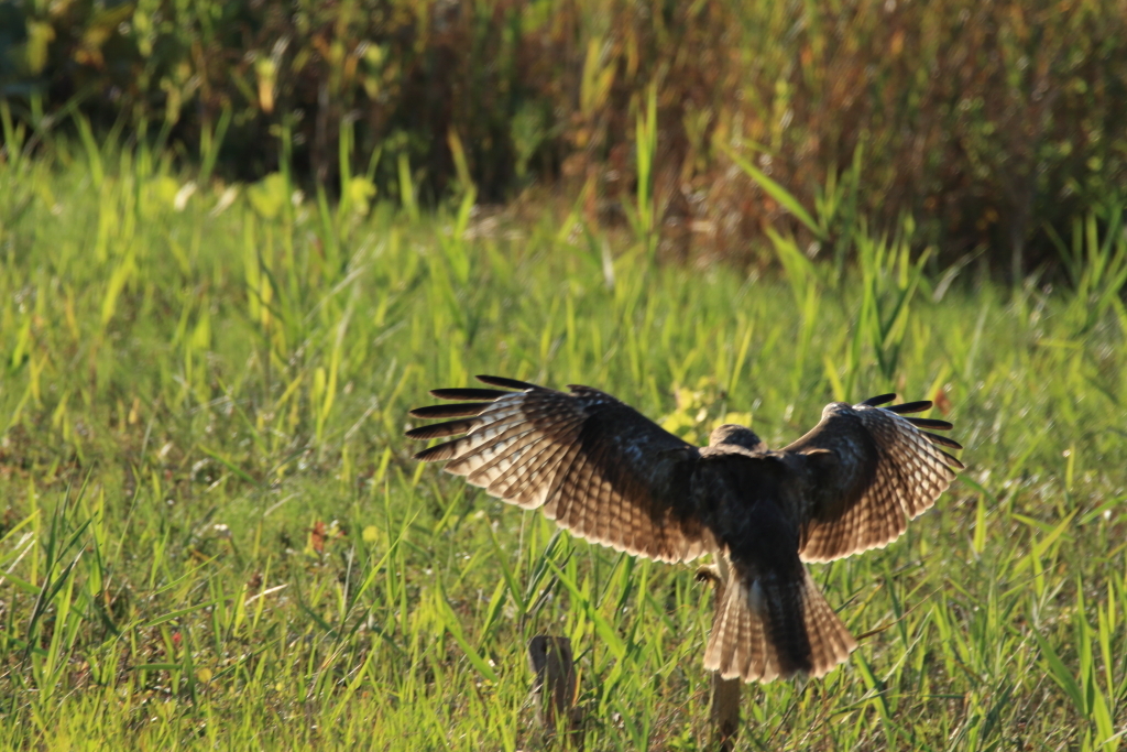 近場に直ぐ着地。こんなことを数回繰り返してまして、よくよく見てたら着地の瞬間に大量のバッタが飛び出してまして、どうやらそれを捕食しているようでした。