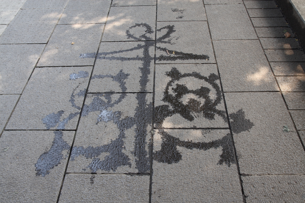 この後も点々と描かれてました。仕事の中にも遊び心を忘れないそんな園内作業員さん素晴らしい。(ただの憂さ晴らしの可能性も…)