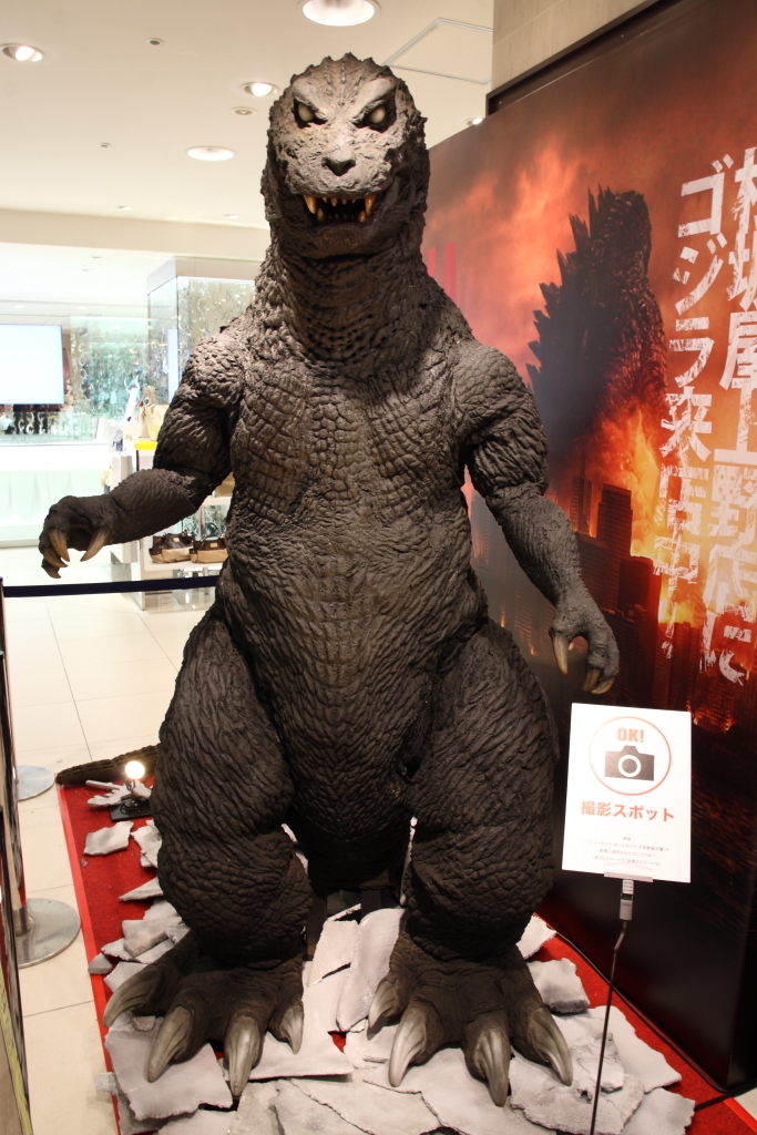 『松坂屋』にて『ゴジラ』に遭遇。わざわざ撮影スポット等と書かれてたら撮らねば!!ただ黒目がないので『怖ぇ~よ』。