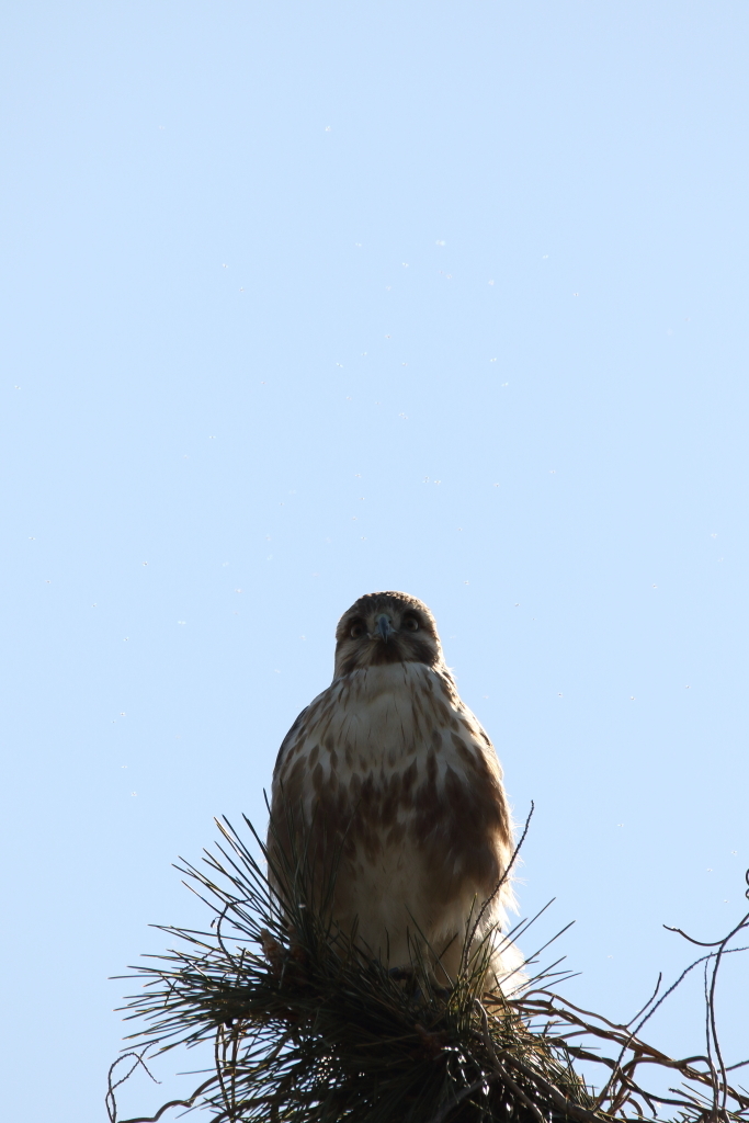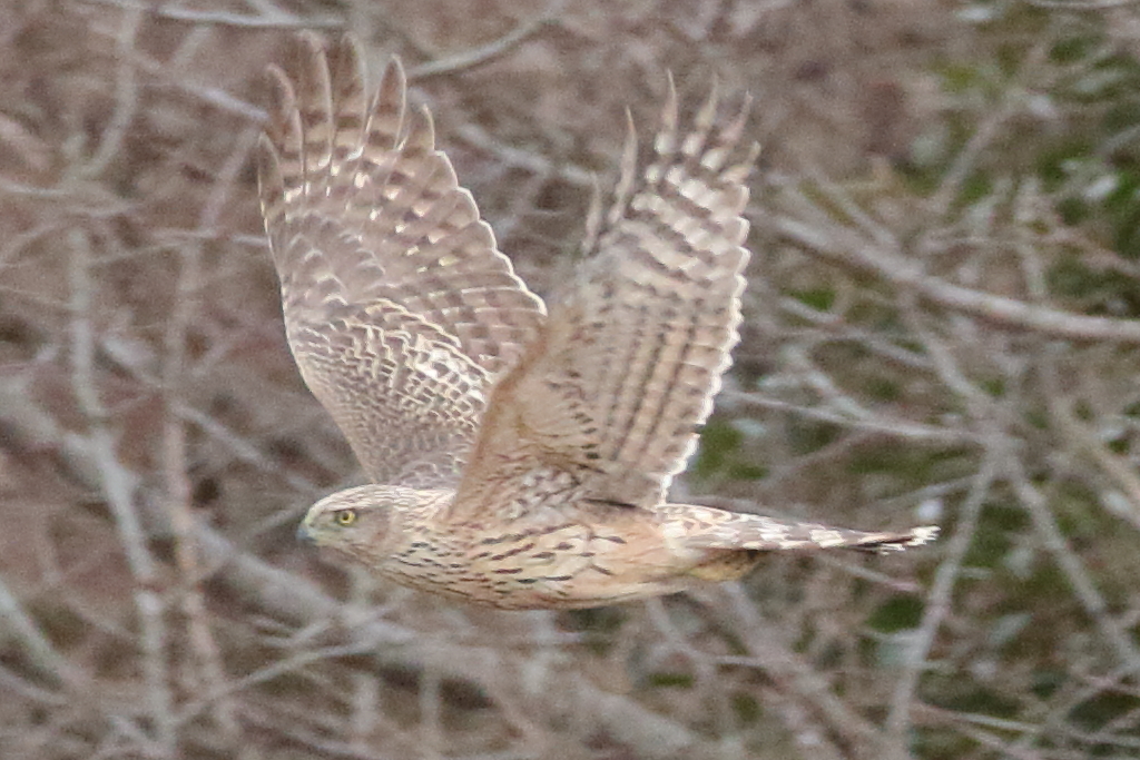 『ジョウビタキ♀』。この後、軽く昼食を取っていると上空に猛禽らしきものが。