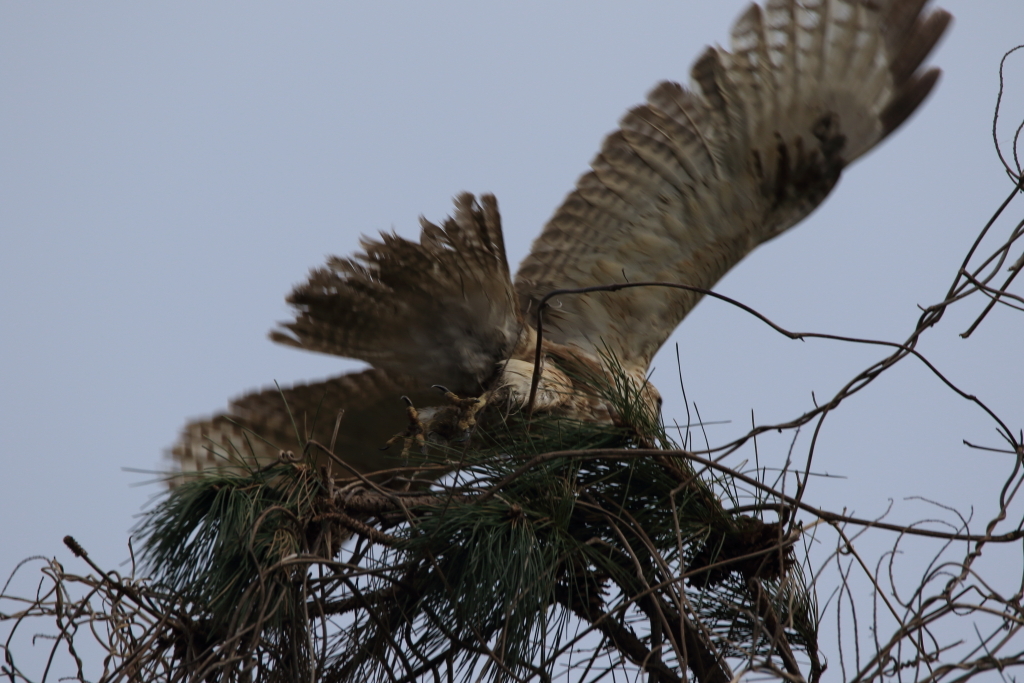 帰り際、いきなり飛んで来て、近くの木に止まった『ノスリ』