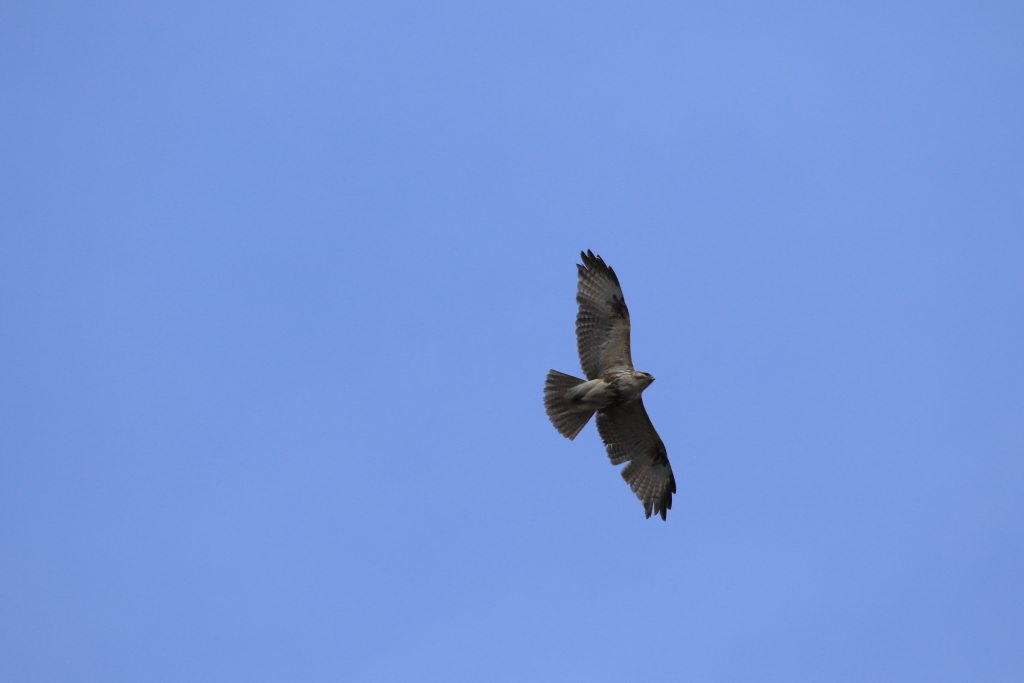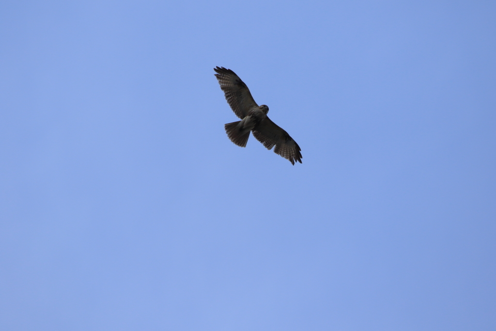上空にノスリ。翼の一部が欠損しているいつも見かける子ですw