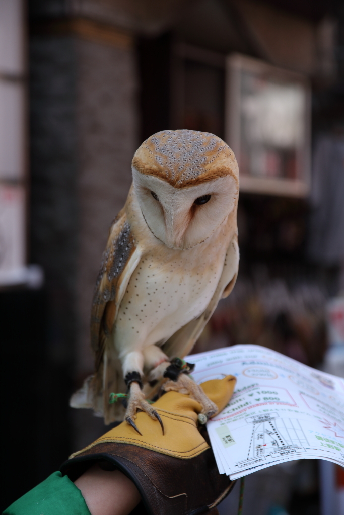 「アメ横に『メンフクロウ』…だと…!?」当然ながら、昨今流行のフクロウカフェのスタッフさんがビラ配りのお供に連れていた子です。
