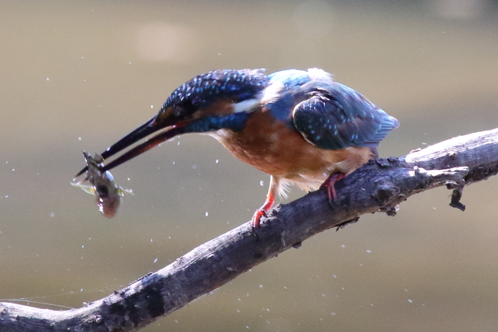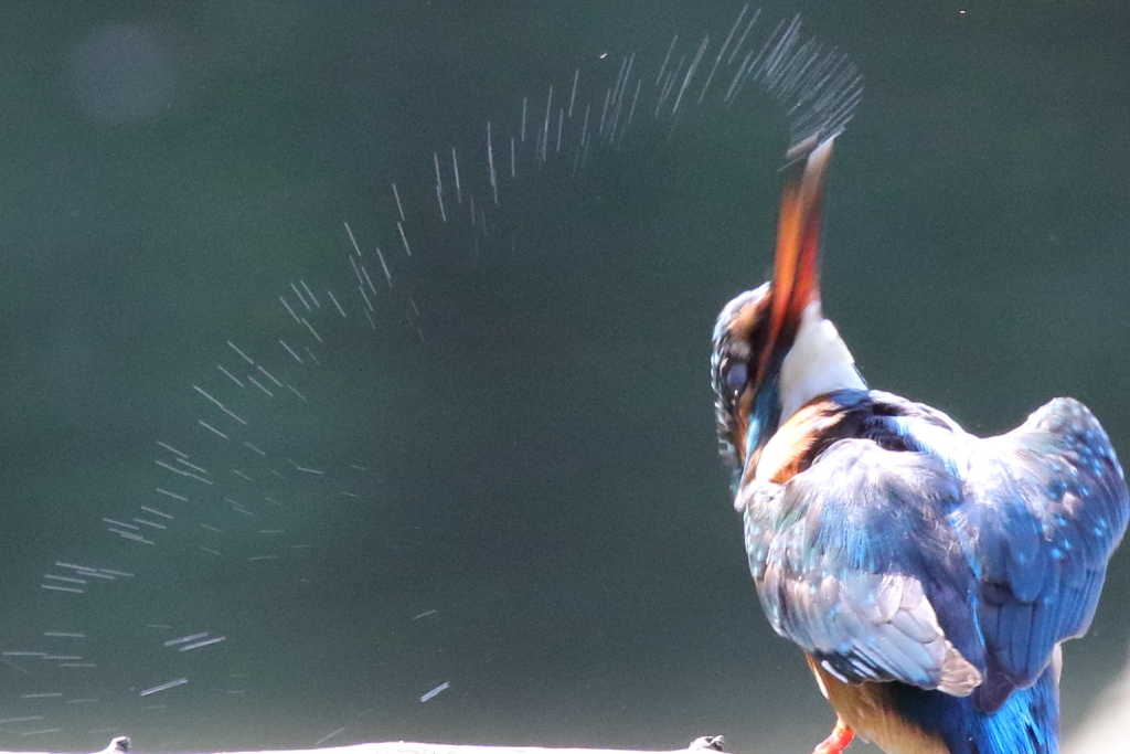 カワセミは向きを変えて口から水をまき散らしてましたw