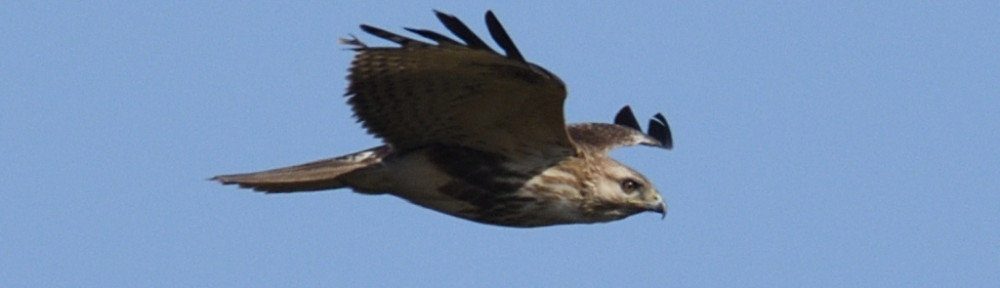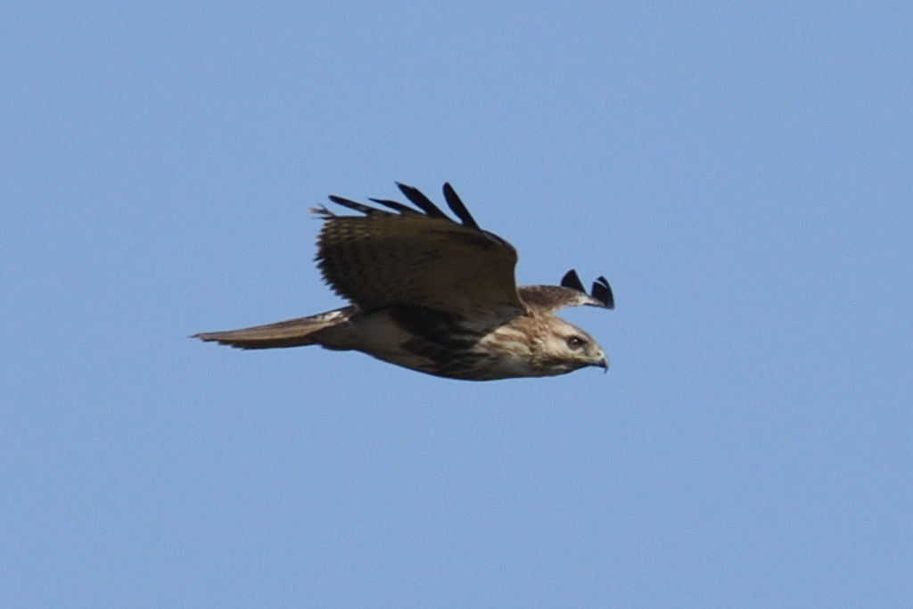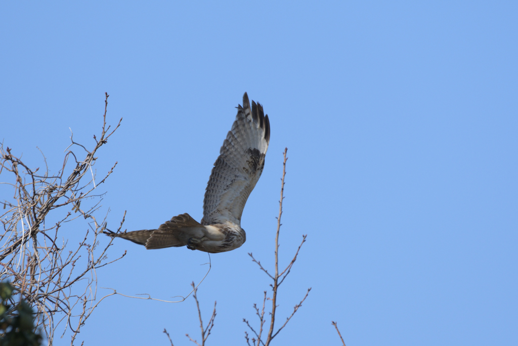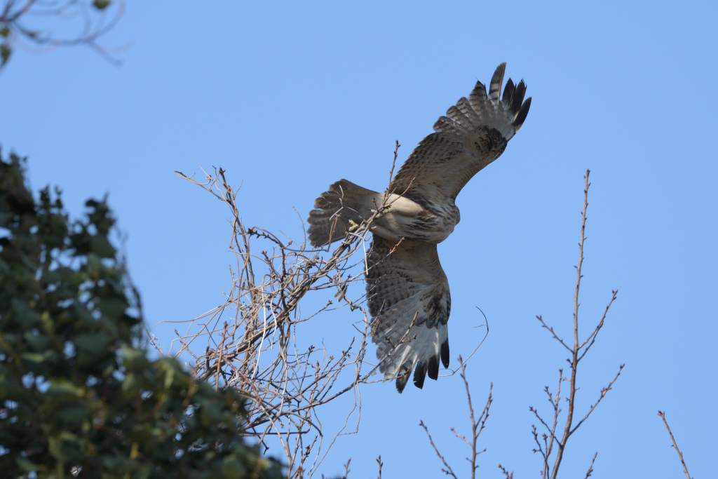 三度ノスリ飛来。真横を向きながら飛んでました。