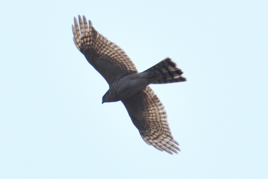場所を変えた所で、頭上を通過する『ハイタカ』を発見。近距離ではあったものの逆光の為残念な写りorz
