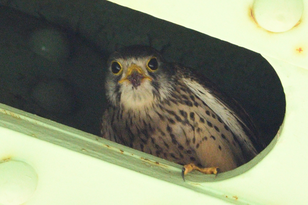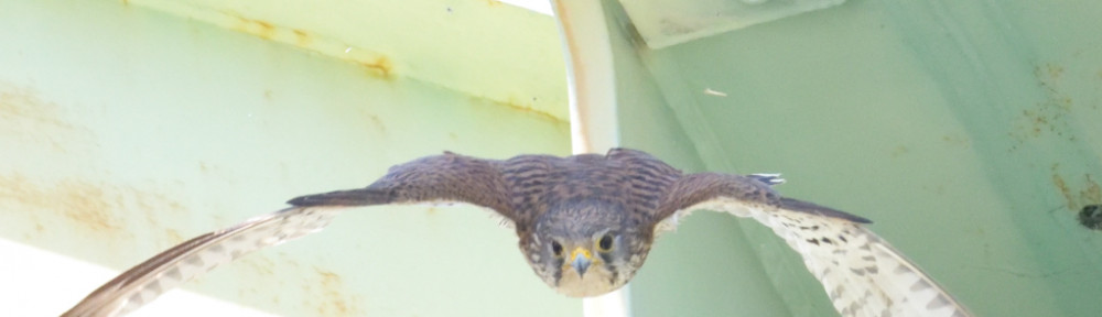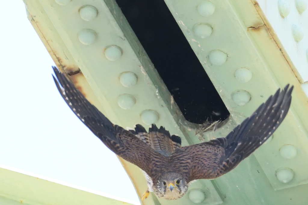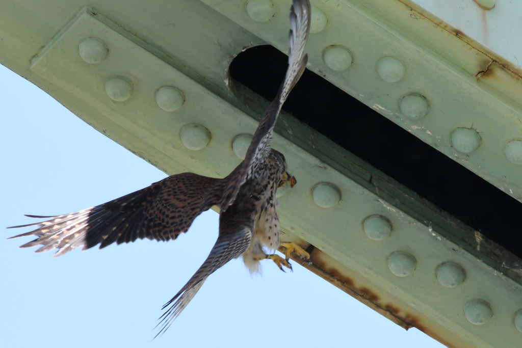 トカゲを咥え巣に戻る『チョウゲンボウ♀』を発見。