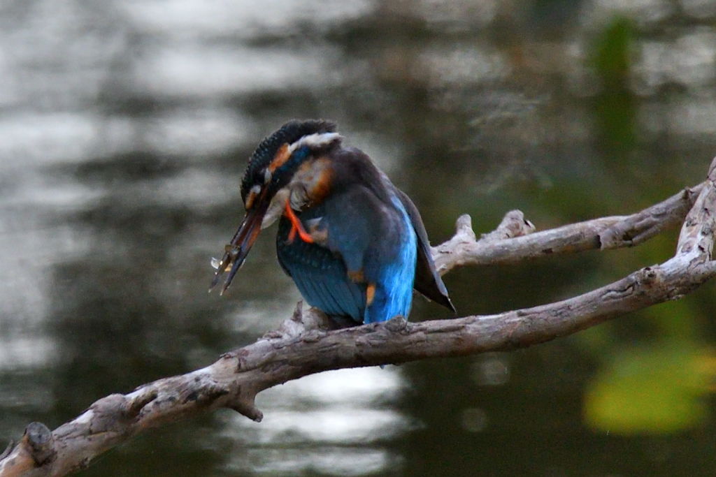 結局『カワセミ』の居る場所に戻ると、狩り後のご様子。しかし何故に足がそんなとこに(笑)