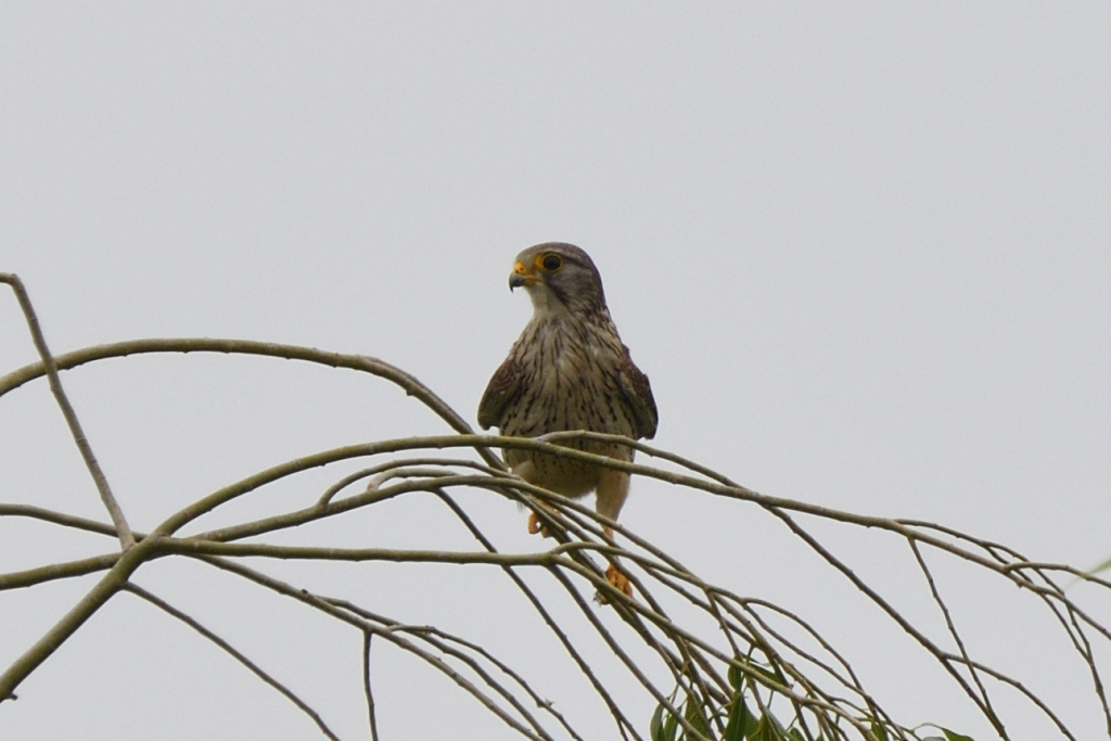 反対側のネットの支柱に止まった『チョウゲンボウ♂』