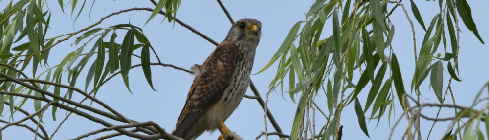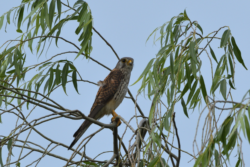 次はやなぎの中に止まった『チョウゲンボウ♂』