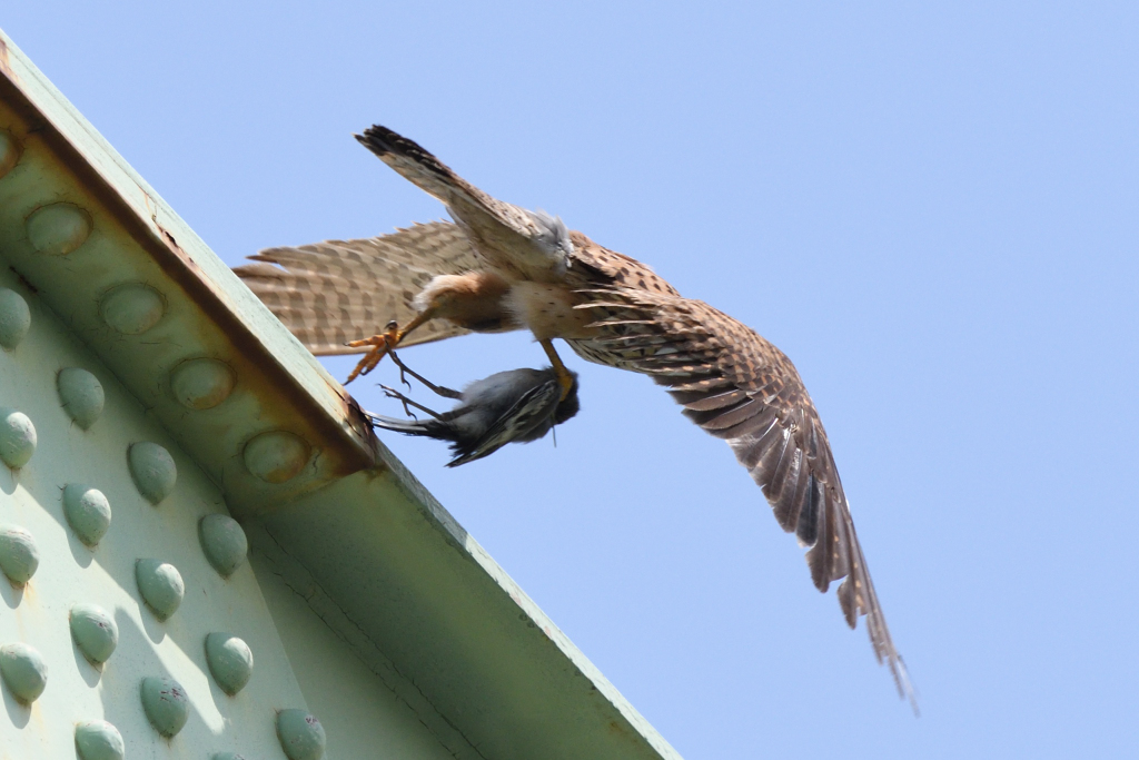 犠牲鳥はハクセキレイの幼鳥かな。食物連鎖とは非情なり…