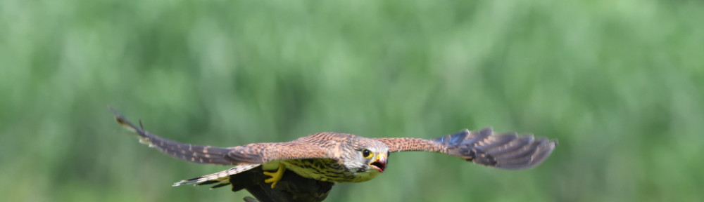 雛達に餌を与えた後、近くで警戒していたオカンの『チョウゲンボウ♀』が