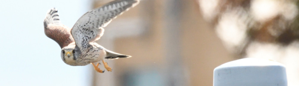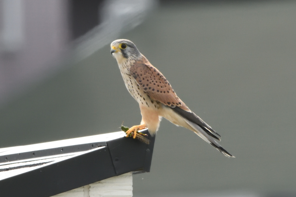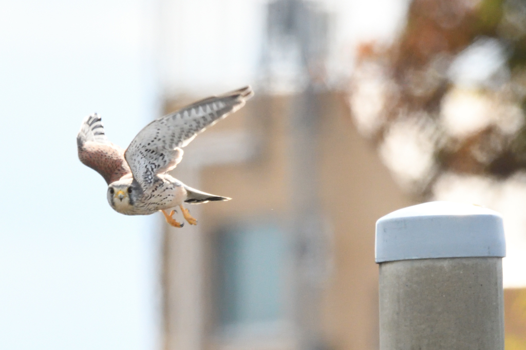 アンテナに止まる『チョウゲンボウ♂』を発見。