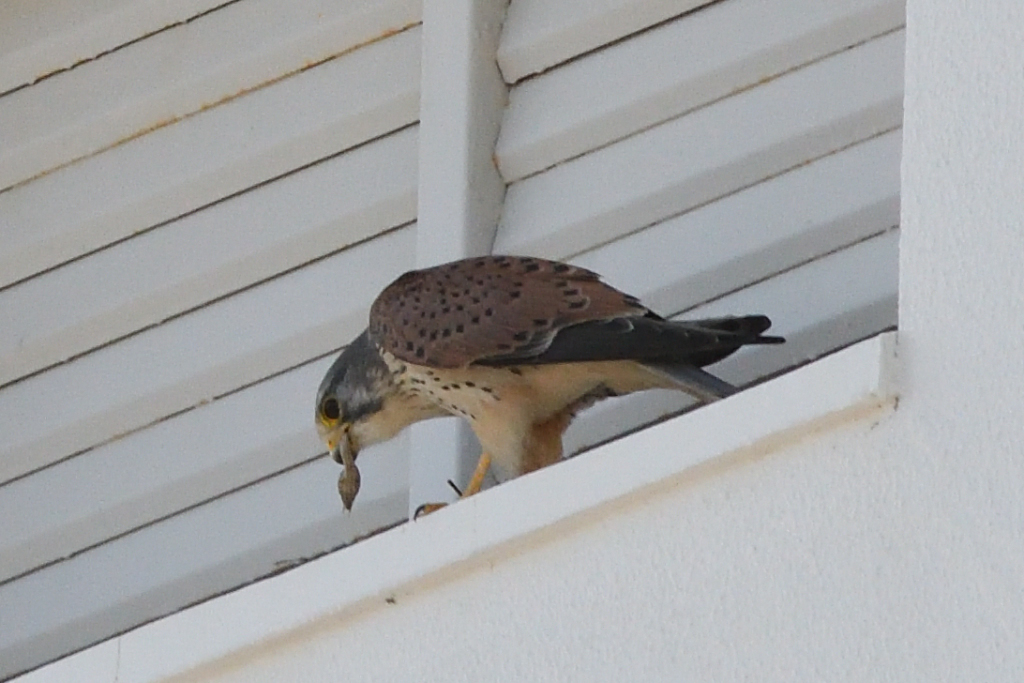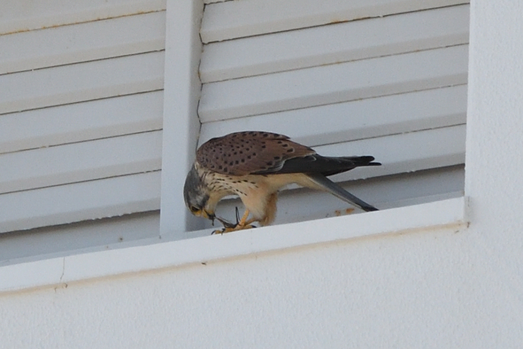 建物の窓枠に落ち着いた様で、
