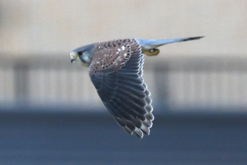 そのまま目の前を通過して、建物の屋根に止まったので追いかけます。ちなみにそこから獲物に向かってよくダイブするので急ぎますww