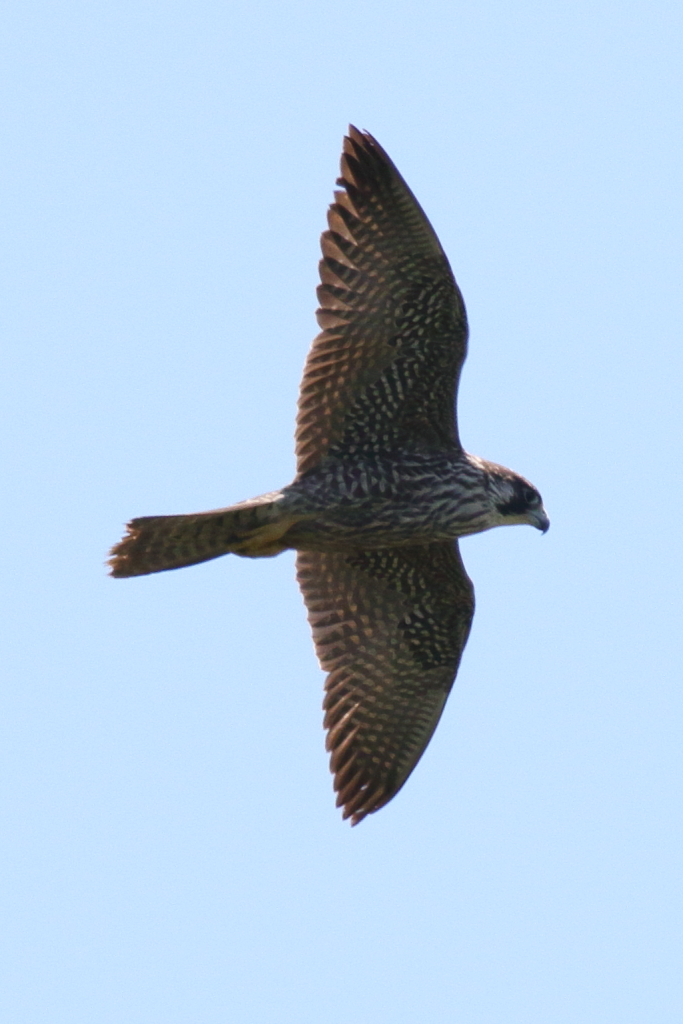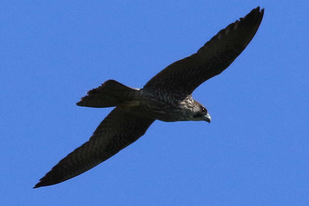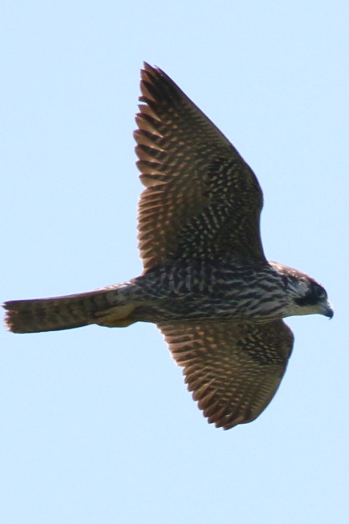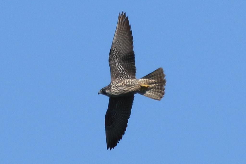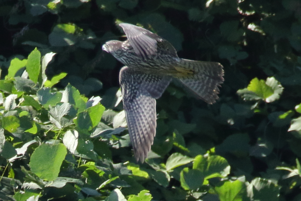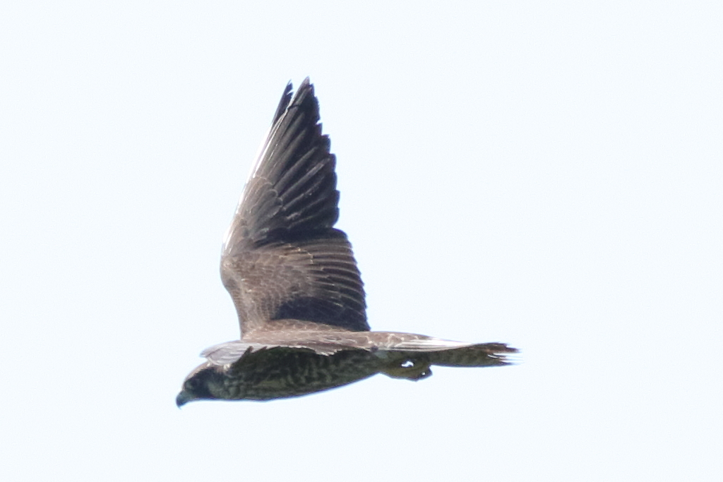 頭上の近い所を通過する『ハヤブサ(幼)』を再び激写。私が撮ったハヤブサとしては現在一番近くで撮れたものです。