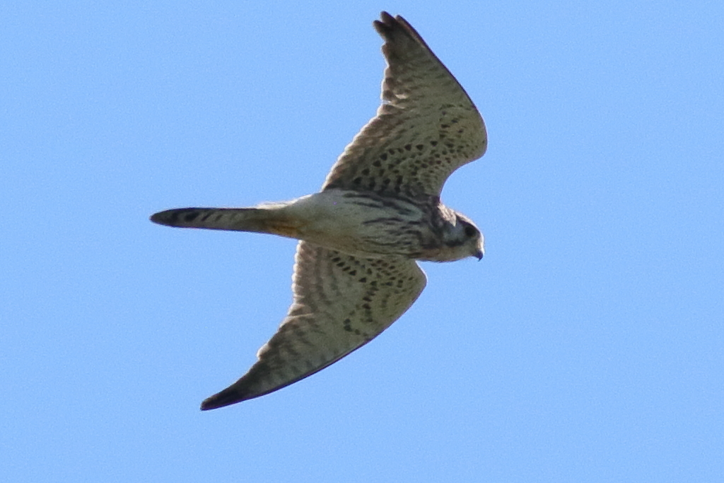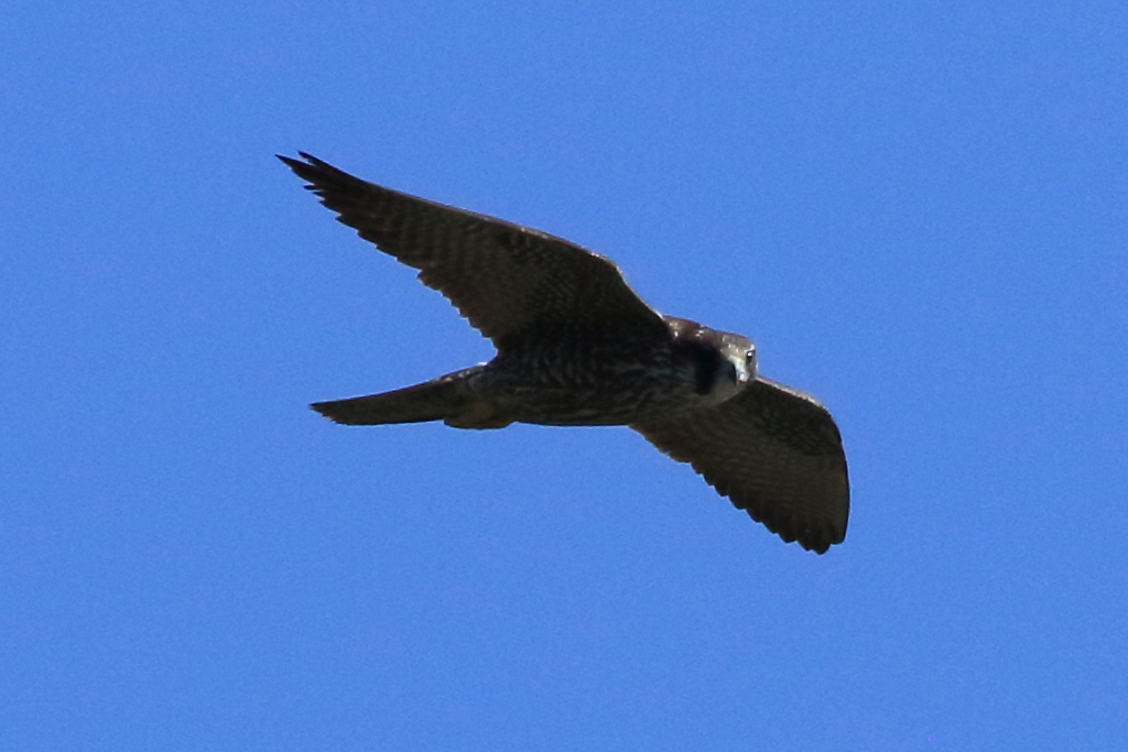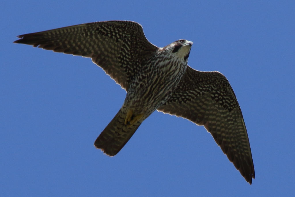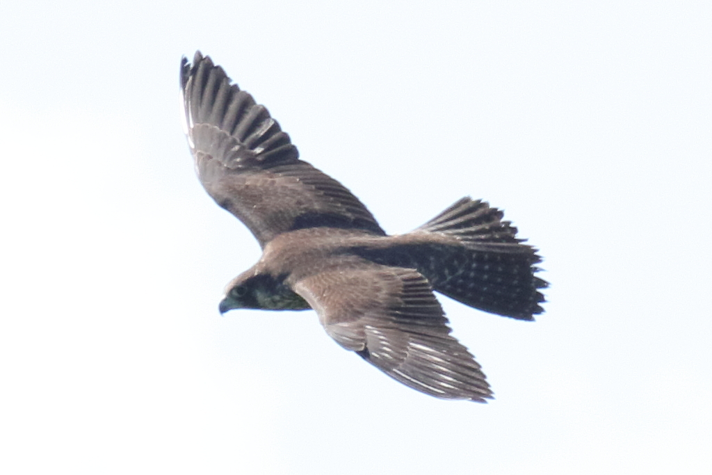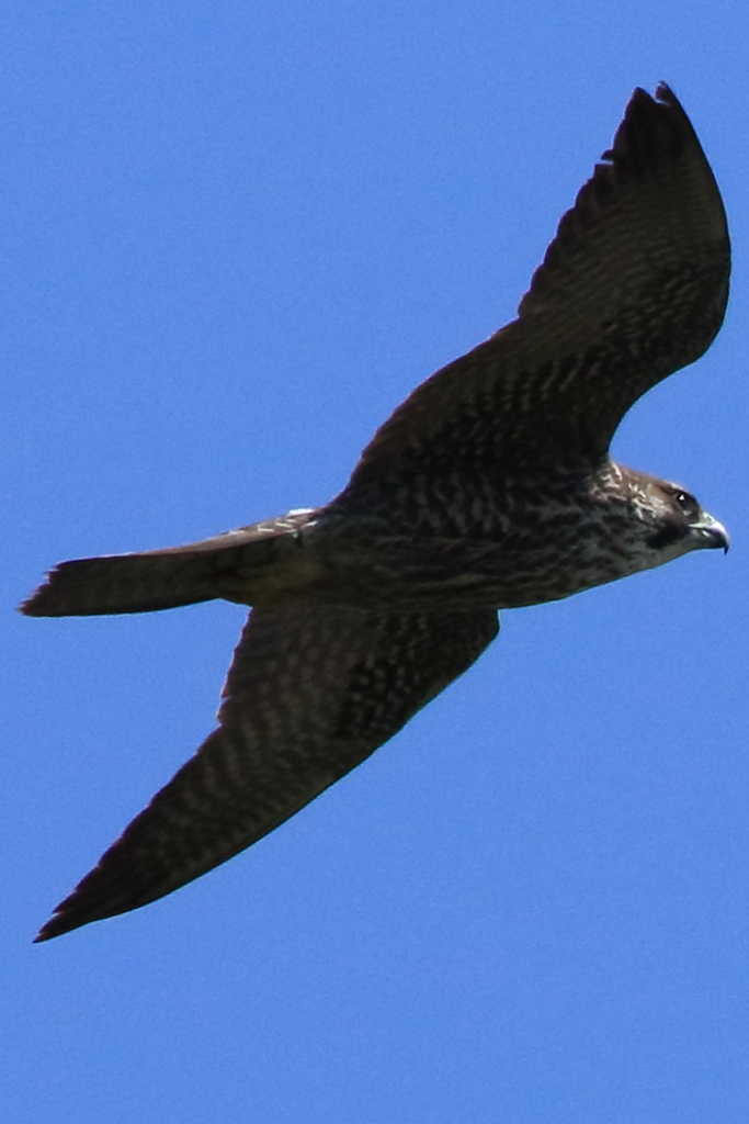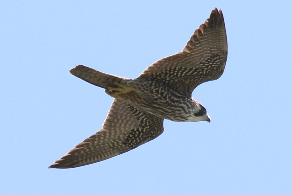 頭上の近い所を通過する『ハヤブサ(幼)』を再び激写。私が撮ったハヤブサとしては現在一番近くで撮れたものです。