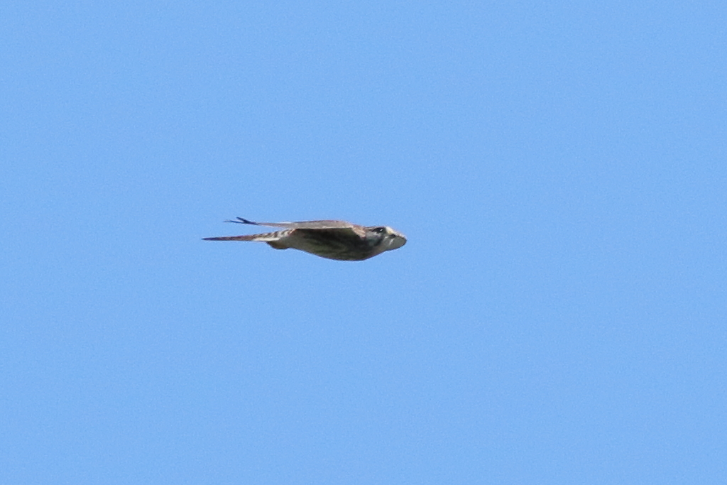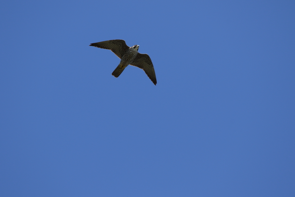 徐々に遠くへ飛んで行きそうですがまだ撮影可能な距離にいる『ハヤブサ(幼)』