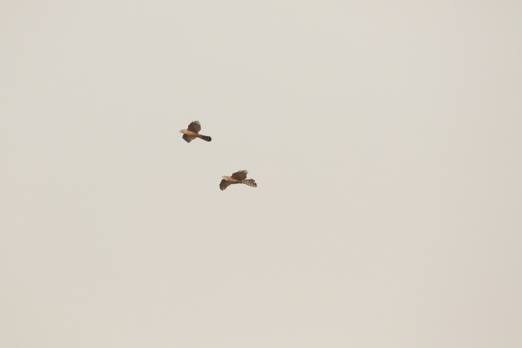 さて、この日はあいにくの曇り。しかし、いきなり猛禽を発見!!しかも2羽!!!
