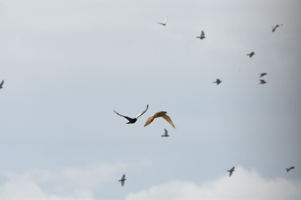 で、オオタカがひとたび飛ぶとハトなんかがパニックですww