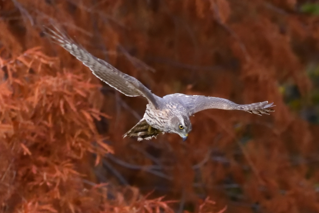 ようやく『ハイタカ』登場。ですが遠いし、喉元が膨らんでるのでまたもや他で狩って食べてきて帰る途中に通過して行っただけorz