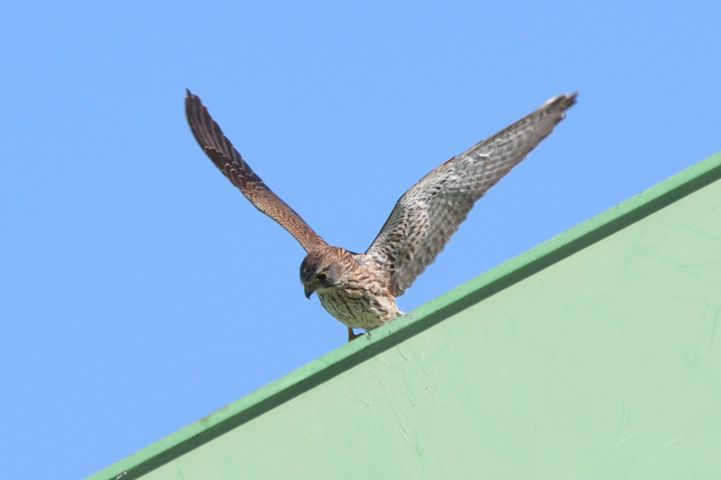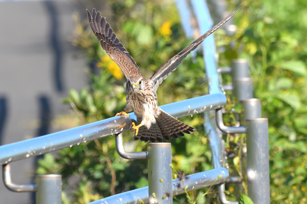 少し離れた橋の上に移動したチョゲ美こと『チョウゲンボウ♀』