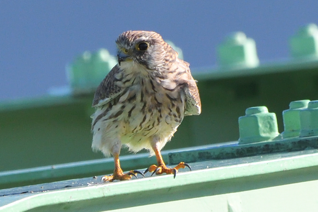 鉄橋の上からこちらを観察しているようなチョゲ美こと『チョウゲンボウ♀』
