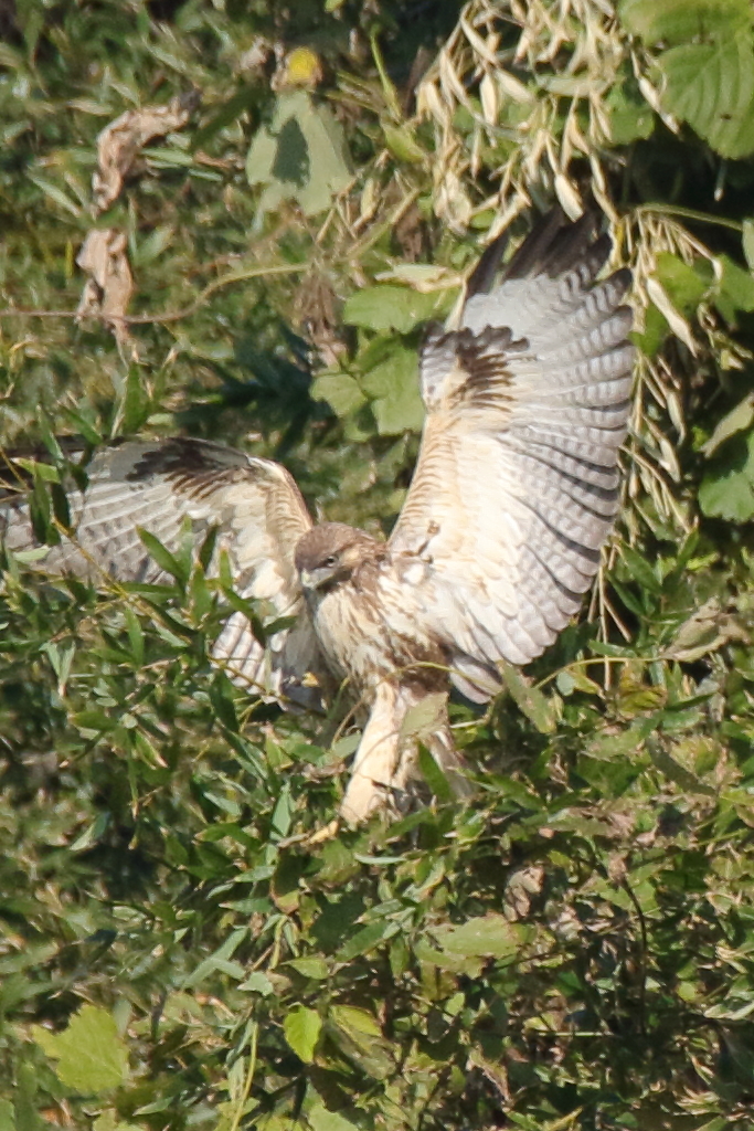 先ほどのノスリが止まりました。ここも毎年見かける場所なので、いよいよ今季も居ついたっぽいお。ちなみにここに居つくのはノスリとトビぐらいで、どうやらオオタカ等は他に寝床があってここには餌取に来てるだけのようです。