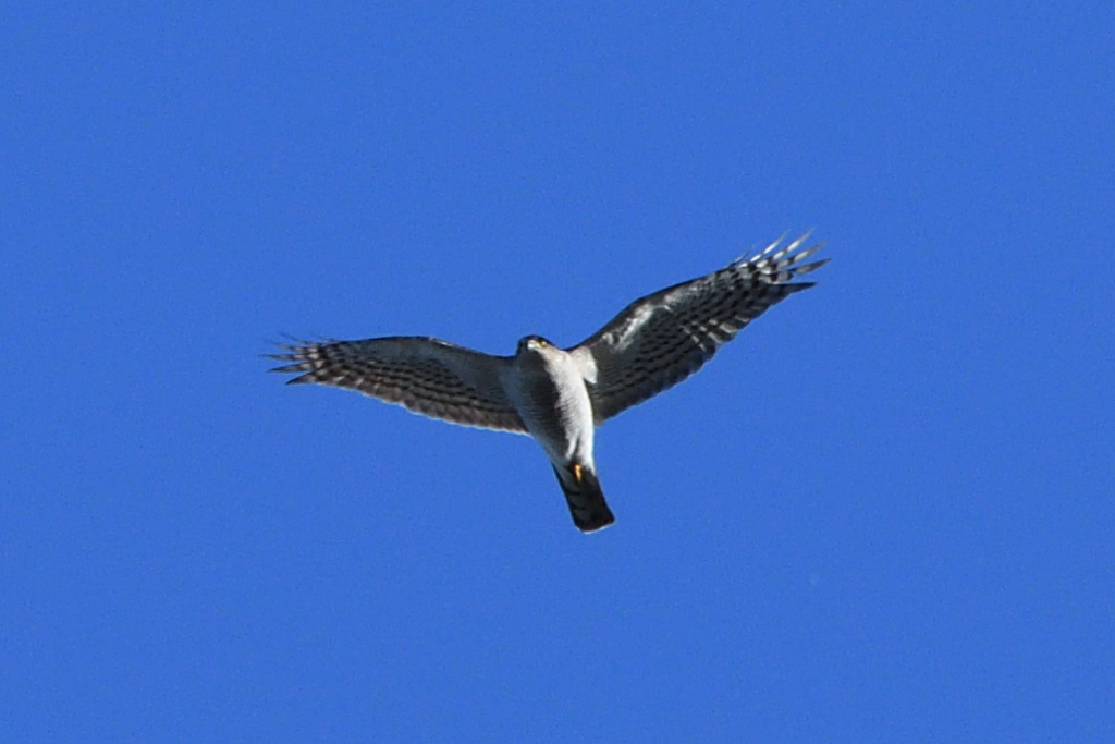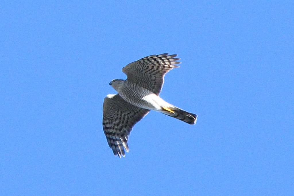 ようやく『ハイタカ』登場。ですが遠いし、喉元が膨らんでるのでまたもや他で狩って食べてきて帰る途中に通過して行っただけorz