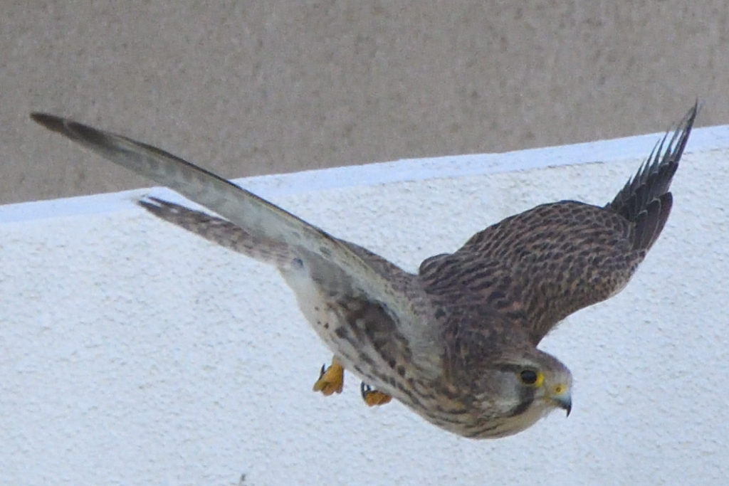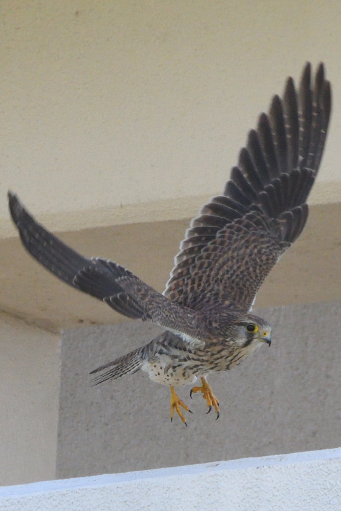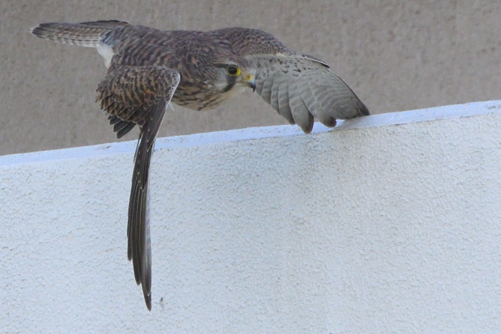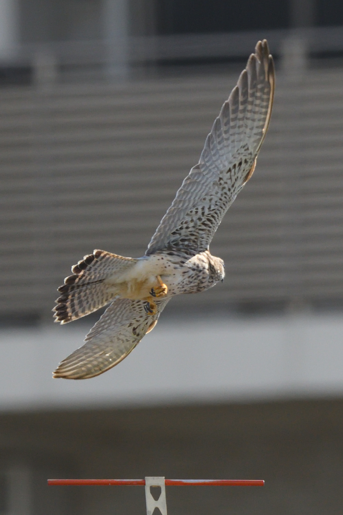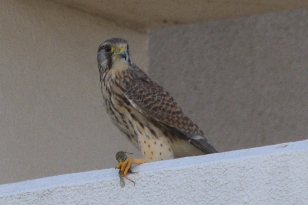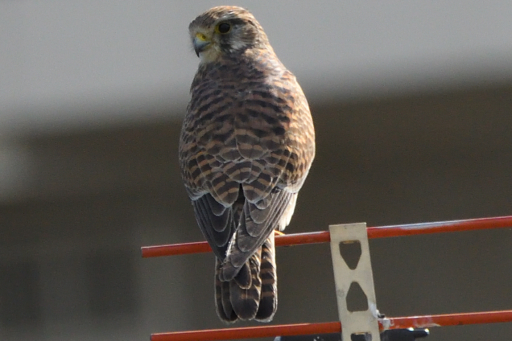 建物に止まる『チョウゲンボウ♀』のチョゲ美を発見。
