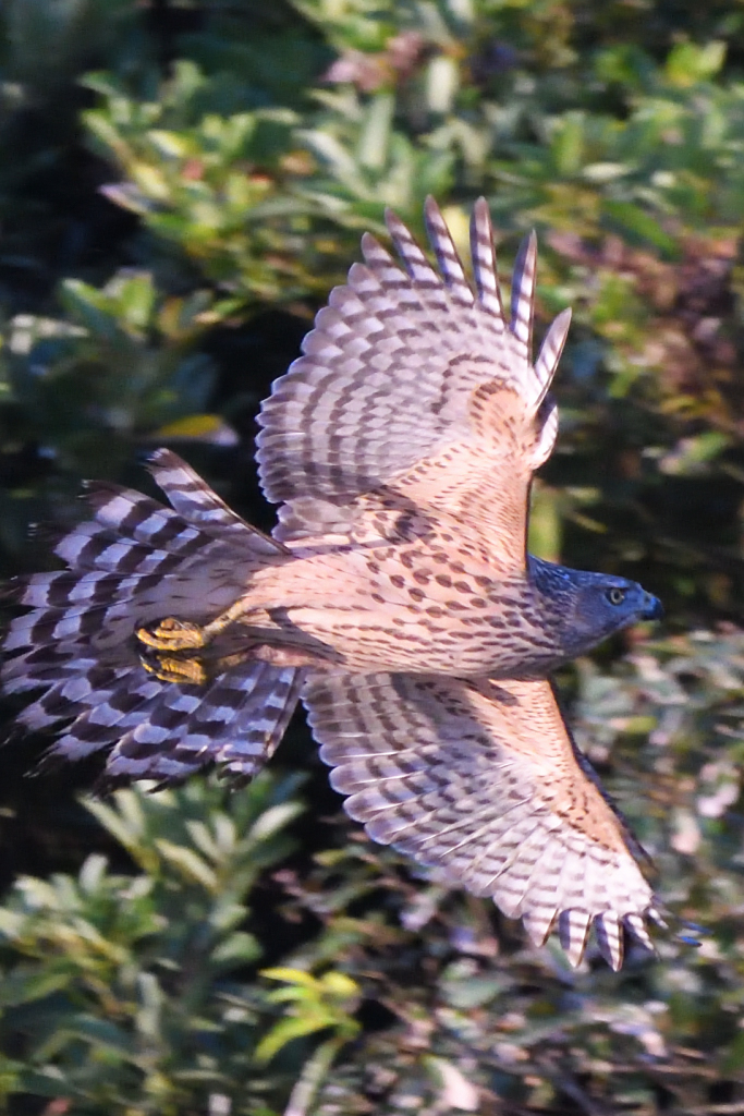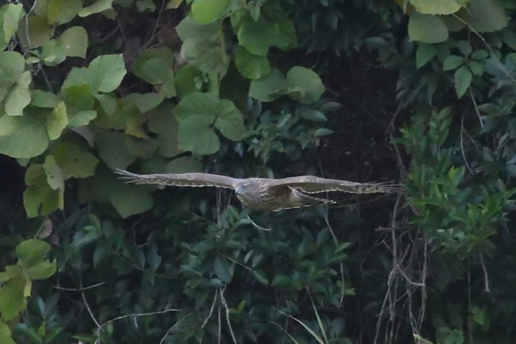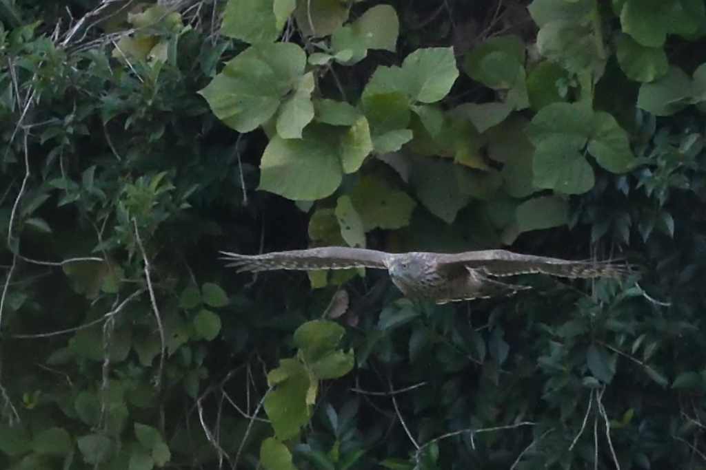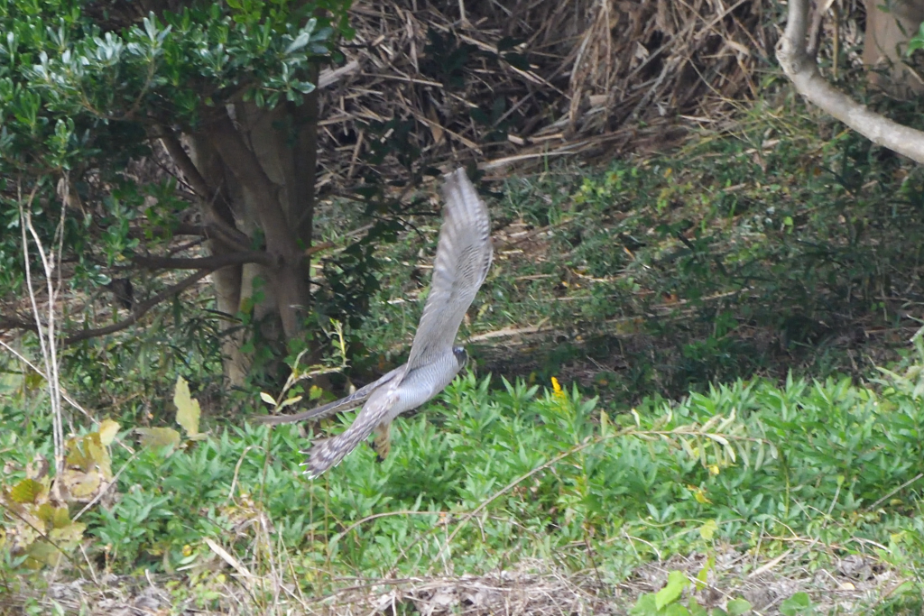 『オオタカ(成)』が何かを掴んで林の中に飛んで行くところでした。
