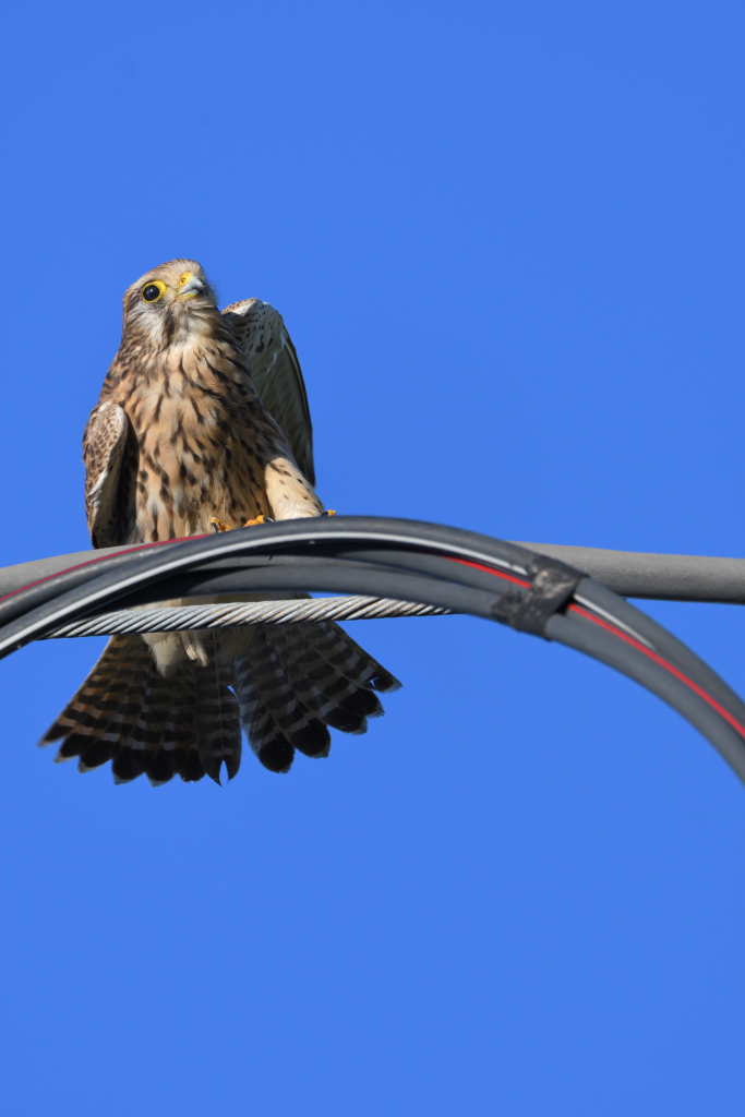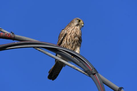 電線に止まった所で追いつくと、またカメラ目線www